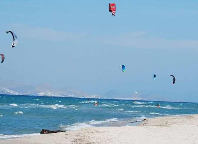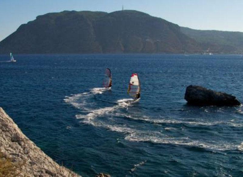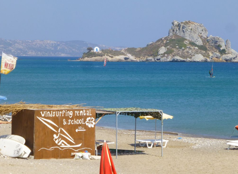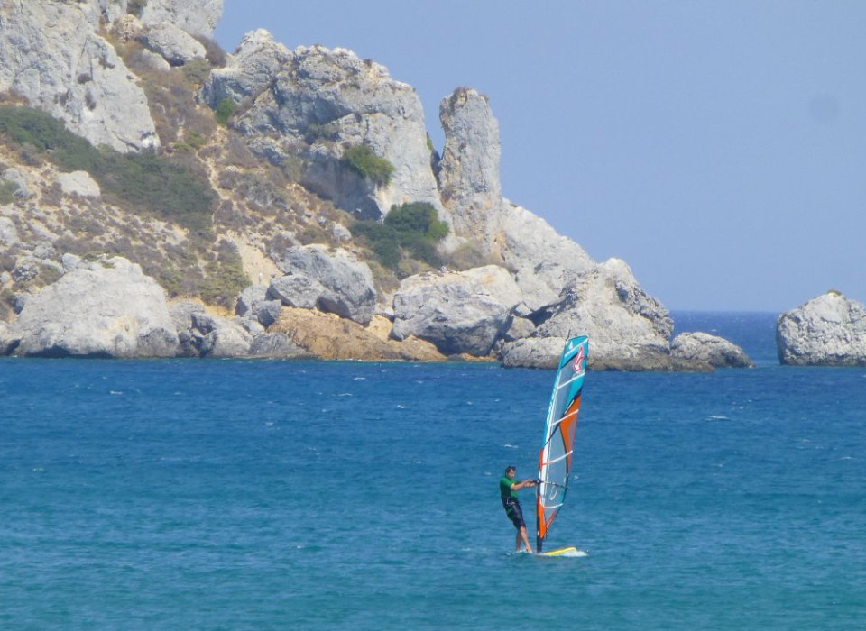 Główny windsurfingowy spot wyspy to zatoka Kefalos.