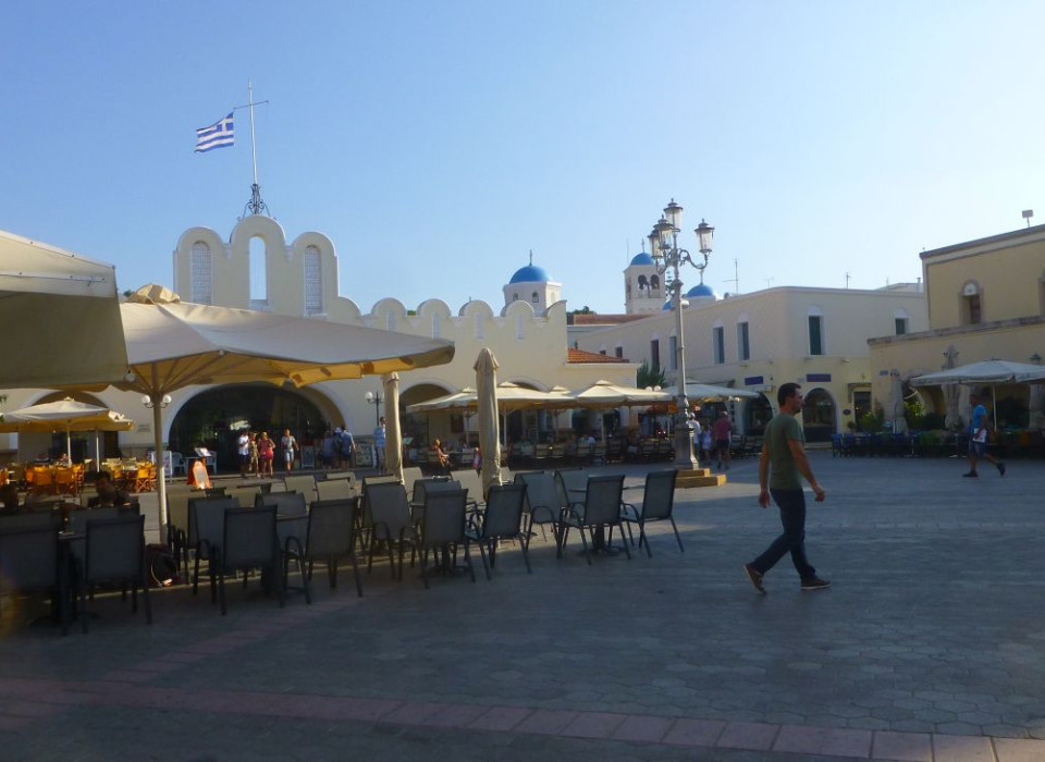 W południowo-zachodniej części wyspy znajdują się popularne miejscowości wypoczynkowe - portowe miasteczko Kefalos oraz kurort Kamari. Tutejsze plaże uważane są przez wielu turystów za najpiękniejsze w Grecji. W ich pobliżu możemy podziwiać pozostałości chrześcijańskiej bazyliki Agios Stefanos z VI wieku, w której zachowała się m.in. wspaniała mozaika.