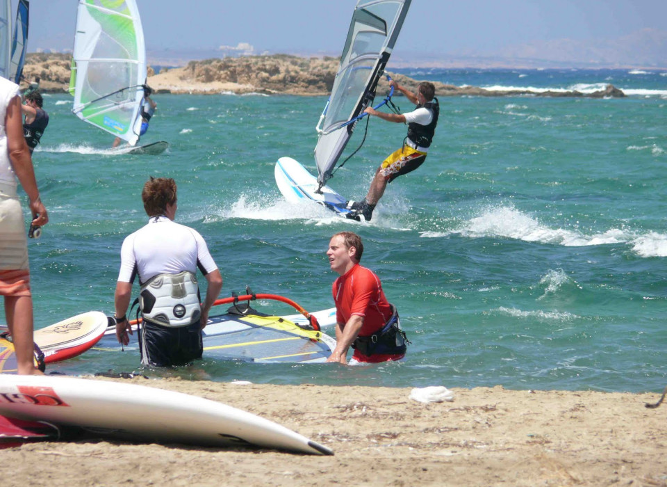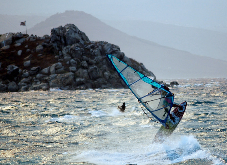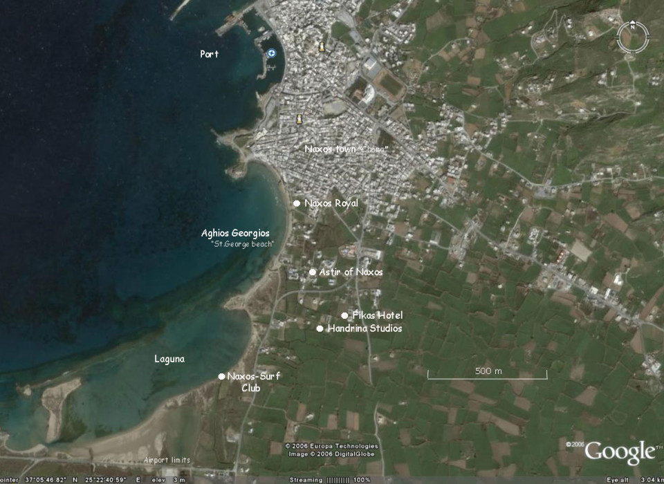 Spot wind znajduje się w pobliżu Naxos (kilka minut od plaży Agios Georgios). Pływa się tu w osłoniętej lagunie. Płaska i płytka woda, w przypadku silnego wiatru niewielki chop. Świetne warunki do freestyle'u czy slalomu. W pobliżu cypla od strony północy – nieco większe fale, umożliwiające trenowanie skoków. Wiatr onshore lub side onshore.