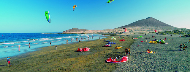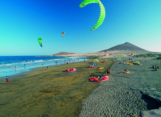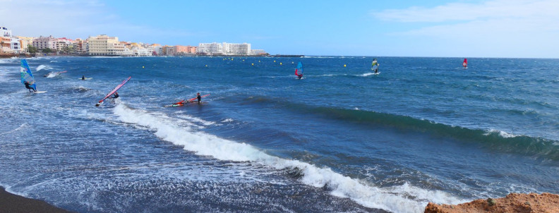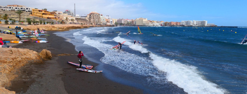 Zatoka El Medano. Znajduje się w południowo – wschodniej części wyspy i jest najbardziej znanym windsurfingowym spotem Teneryfy. To miejsce jest tak dobre, ponieważ znajduje się „w cieniu” wulkanu Teide, którego bliskość, w połączeniu z kierunkiem wiatru, sprawia, że jest on tu silniejszy i bardziej niezawodny niż w innych odcinka wybrzeża. To spot zdecydowanie na mniejsze żagle (ok. 4m) i deski oraz dla osób potrafiących już startować z wody.